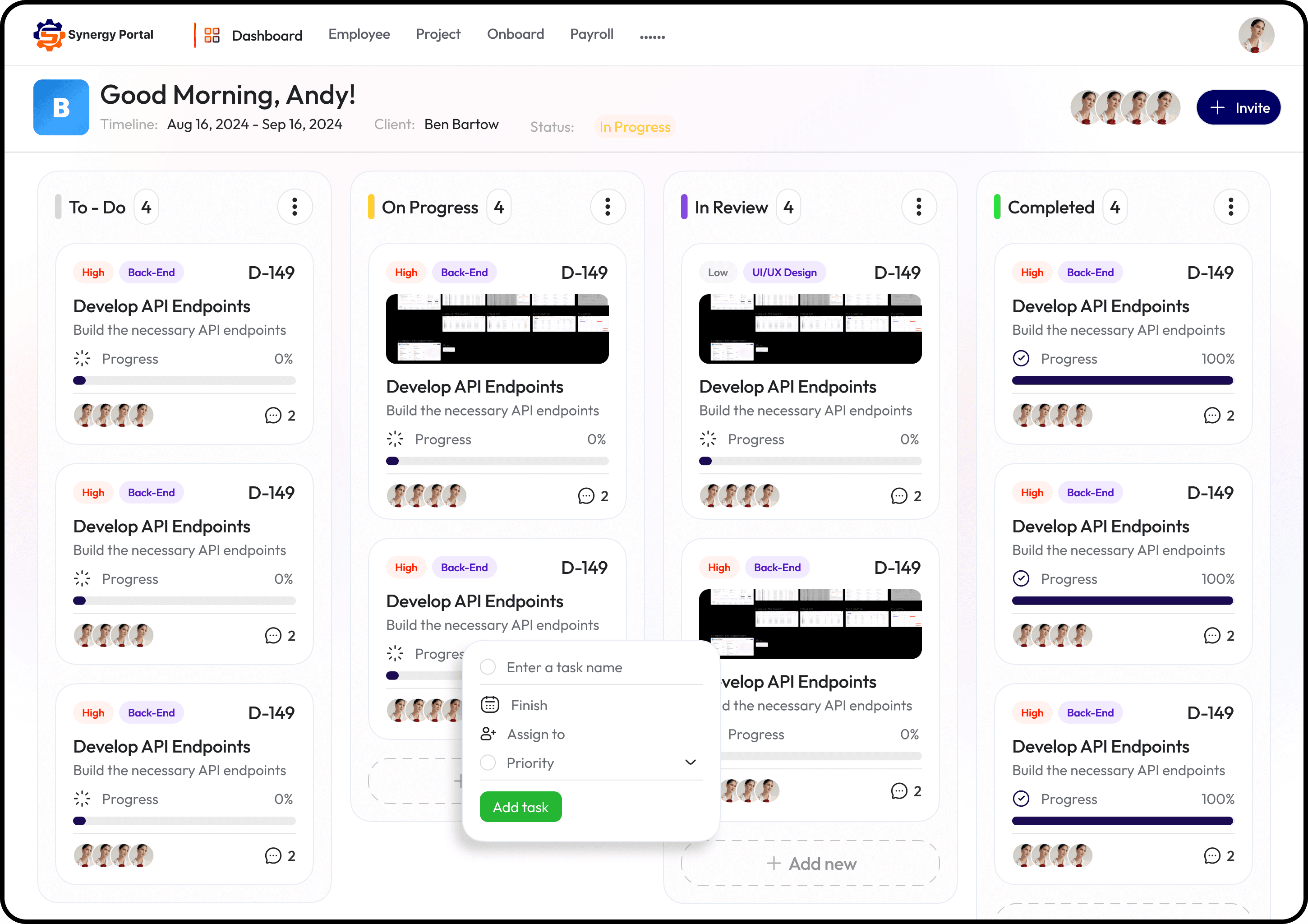 During my time at SBase Technologies, we took on a project to redesign the Synergy CRM Portal, a platform regularly used by businesses. The primary objective was to enhance the user experience by making the interface more intuitive, modern, and efficient.